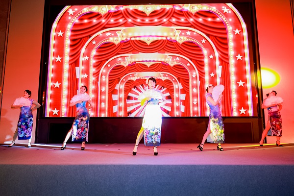 隨著優(yōu)美的音樂緩緩響起,開場舞《夜上?!穬?yōu)雅登場,優(yōu)雅的舞姿隨著旋律變換,盡顯古典韻味?,F(xiàn)場響起了熱烈的掌聲,晚宴正式拉開序幕。