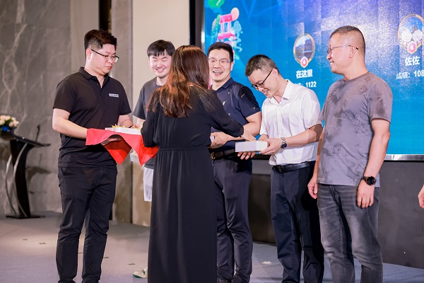 晚宴間隙,一個個精彩的趣味小游戲讓現(xiàn)場氣氛持續(xù)升溫,大家爭先恐后,踴躍參與,一片歡聲笑語。今晚的送驚喜環(huán)節(jié),集團領(lǐng)導為經(jīng)銷商送上了真誠的生日祝福和禮品,晚宴在暖心愉悅的氛圍中接近尾聲。
